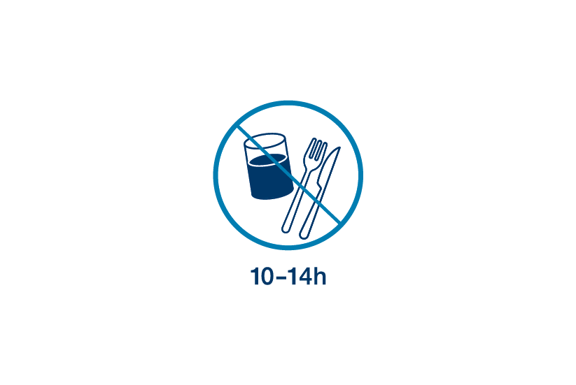 Si se requiere ayuno, no comas ni bebas durante 10 a 14 horas antes de la toma.